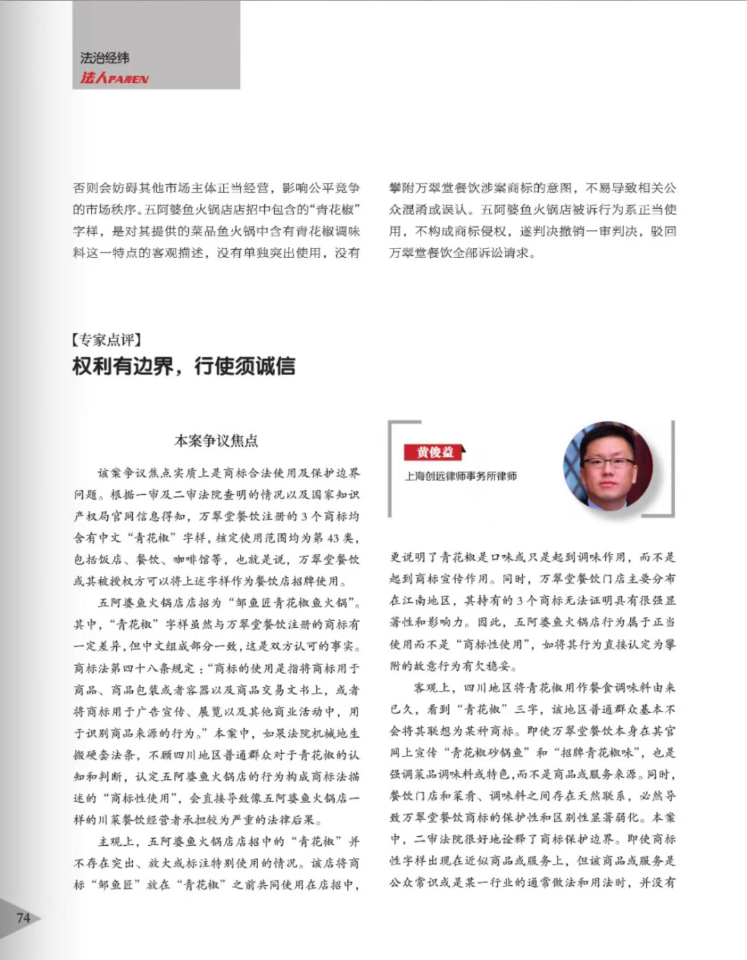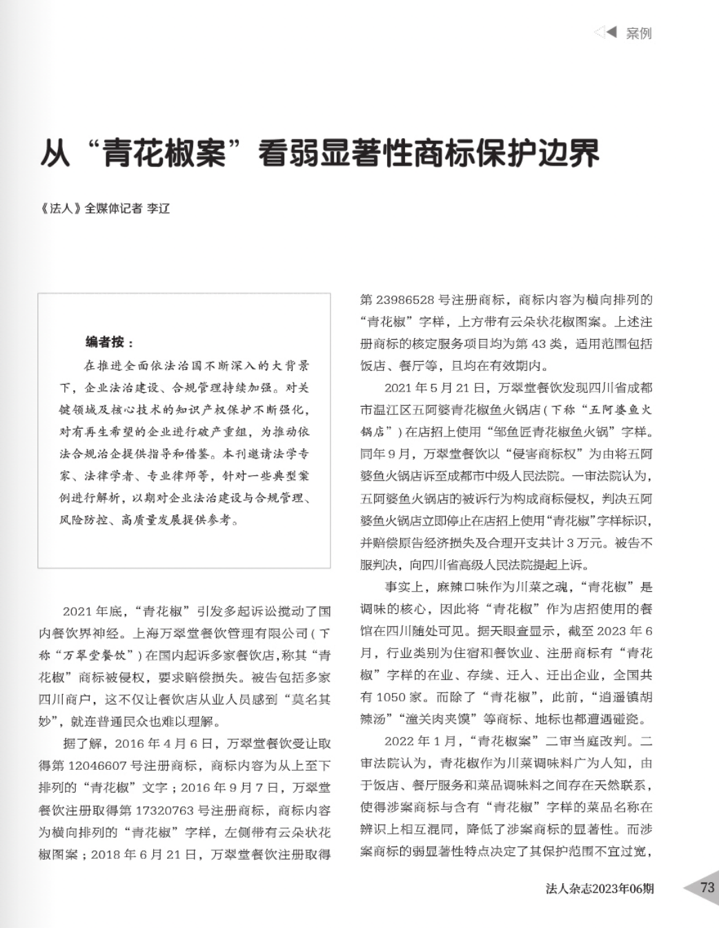 张掖辉知简讯 | 辉知队黄俊益律师应“法治日报”旗下杂志邀请,就“青花椒”案发表专家点评