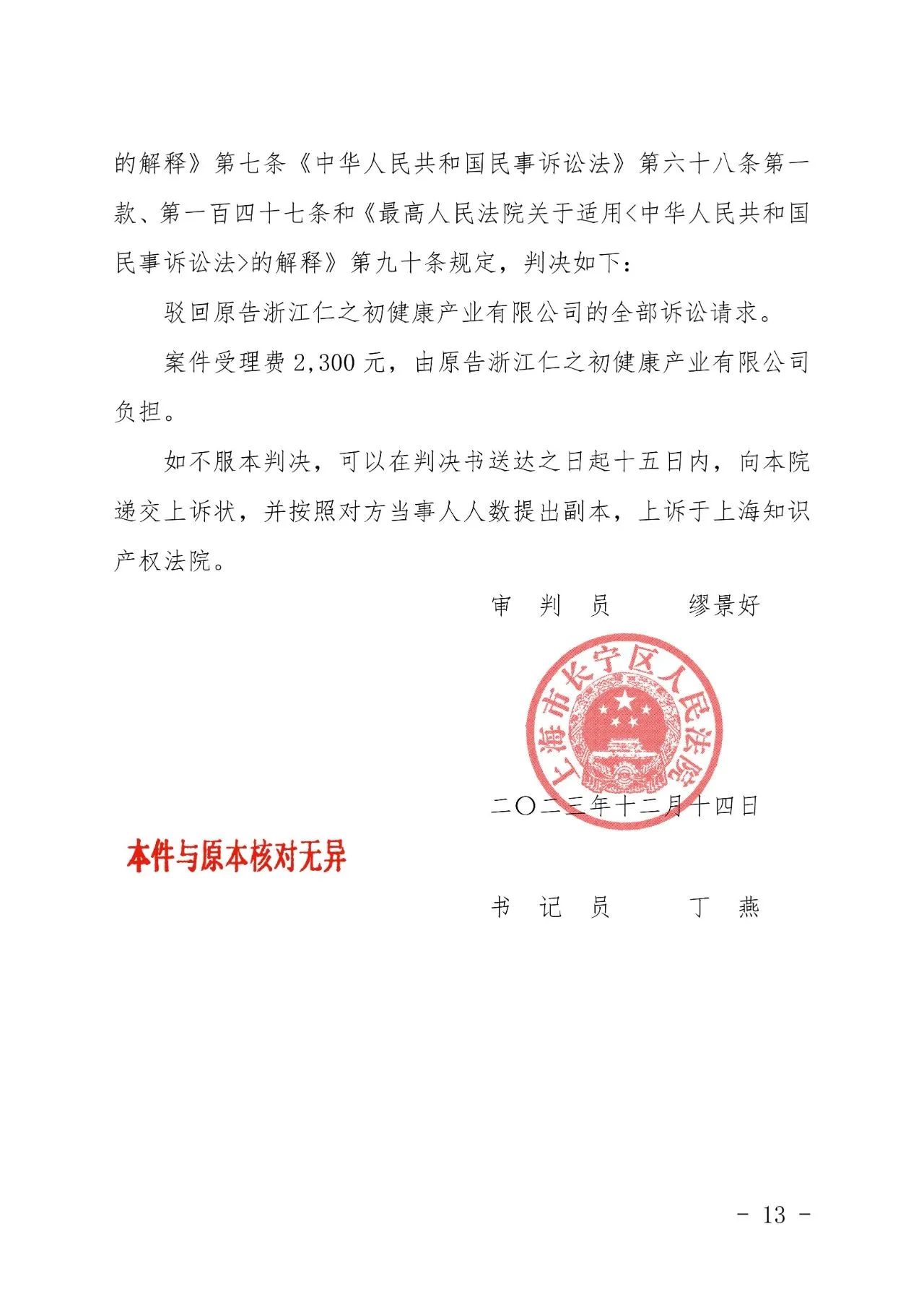 张掖辉知胜诉佳讯 | “仁之初健康”著作权及不正当竞争纠纷案,法院:驳回全部诉讼请求!