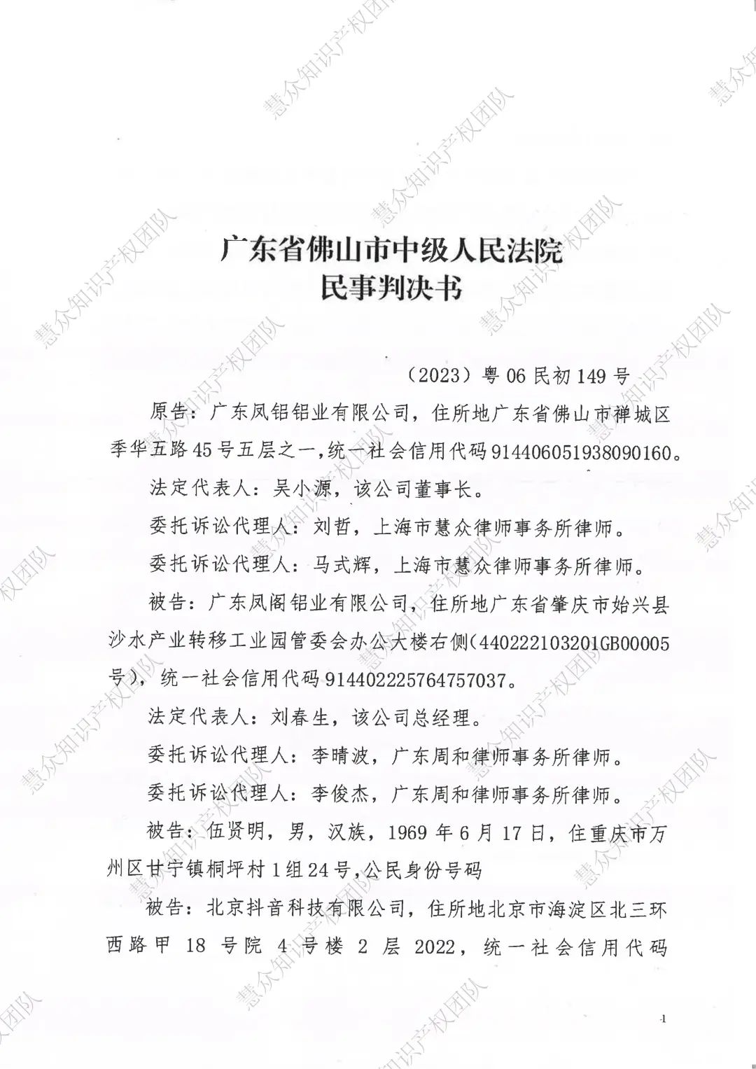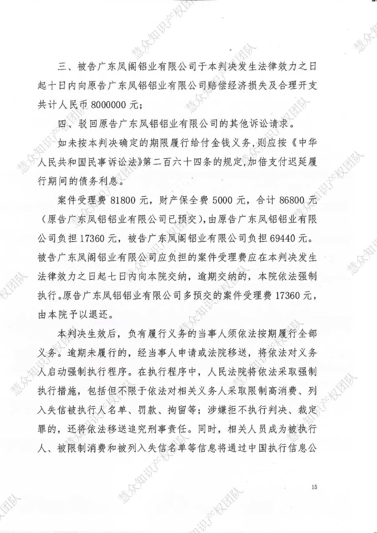 张掖判赔800万!辉知队代理“凤铝”商标维权案胜诉